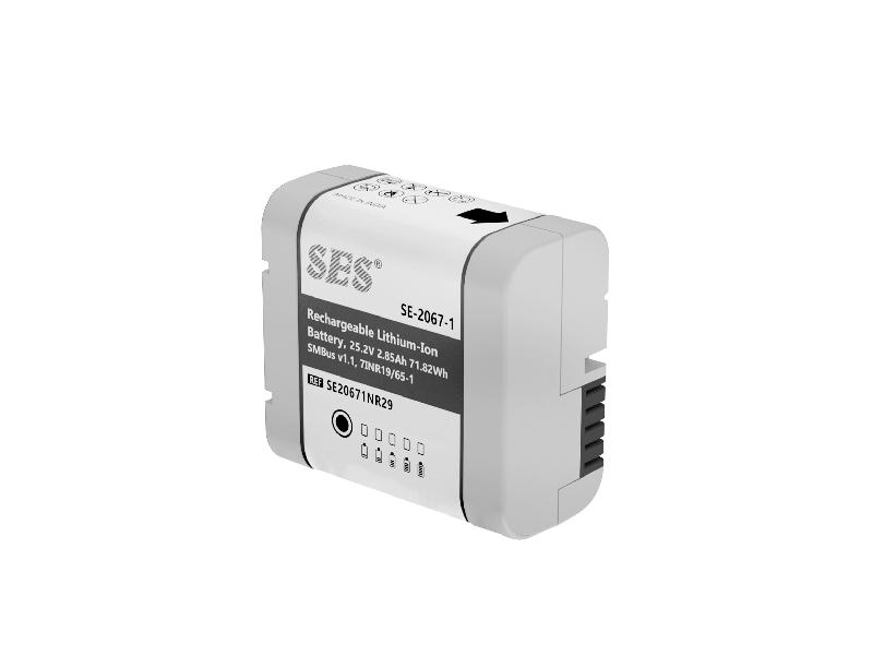 The SE20572NR29 is a 7.2V 11.4Ah (82.08Wh) Lithium ion smart battery which can be used in a numerous portable equipments. The battery comprises eight 3.6V 2.85Ah INR-18650 cells in a 2-series, 4-parallel array and can deliver up to 6A of dischargecurrent. The internal battery management system (BMS) is System Management Bus (SMBus) and Smart Battery System (SBS) compliant and can operate as part of a smart battery system along with a compatible smart charger and host device.